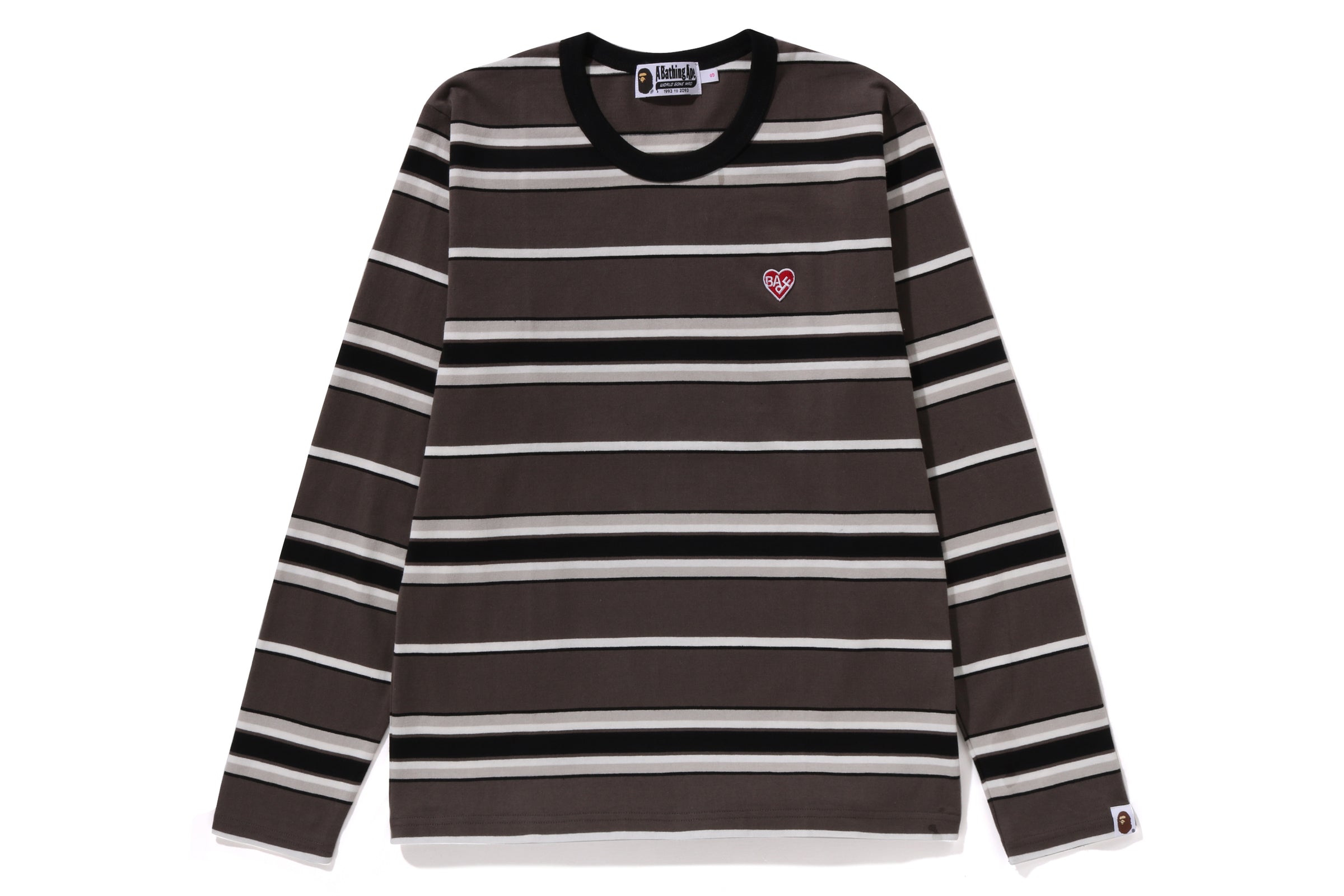 BAPE WOMENS COTTON STRIPED ONE POINT LONG SLEEVE TEE