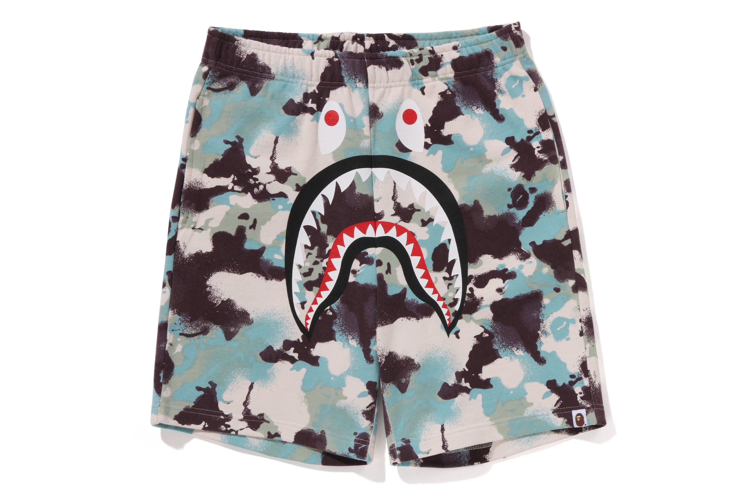 BAPE Men’s Cotton Map Camo Shark Sweat Shorts offer a regular fit perfect for streetwear lovers. Featuring a playful MAP CAMO design with continents and the signature "APE FACE," these soft cotton fleece shorts include a standout SHARK graphic on the front. Designed for comfort, they have an adjustable drawcord waist, making them ideal for both casual and active days. Part of the S2025 Spring/Summer collection, they blend style and ease effortlessly.