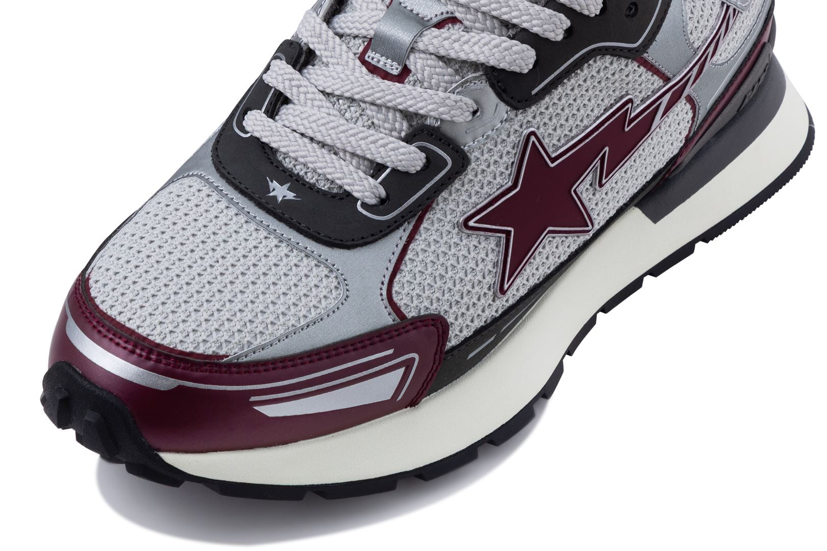 Crafted with embossed metallic fiber and nubuck, this design blends texture and shine. The charcoal colorway is sleek with silver accents, while burgundy adds a bold, luxe touch.