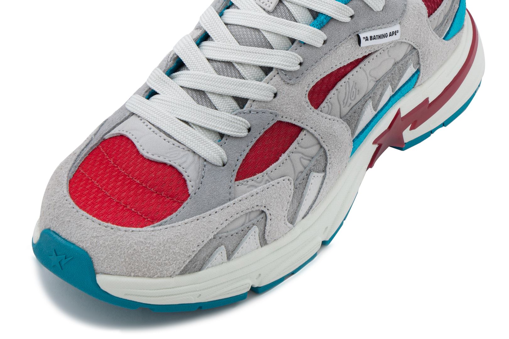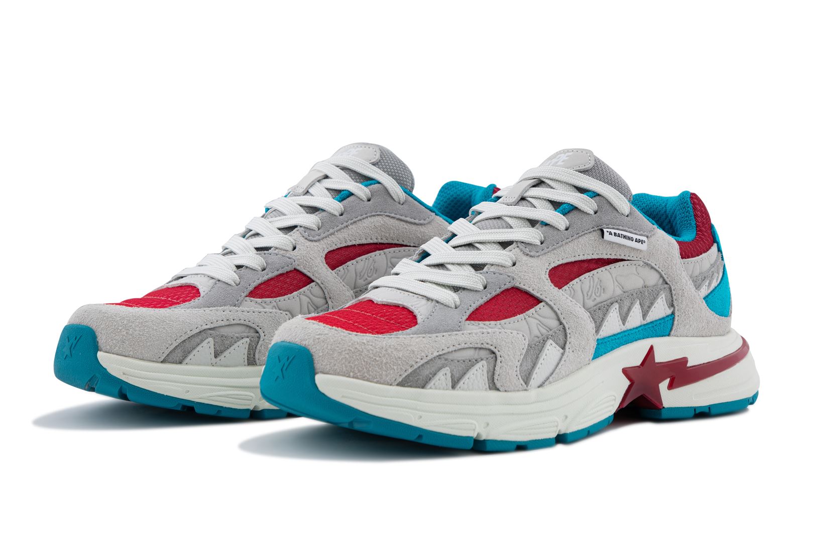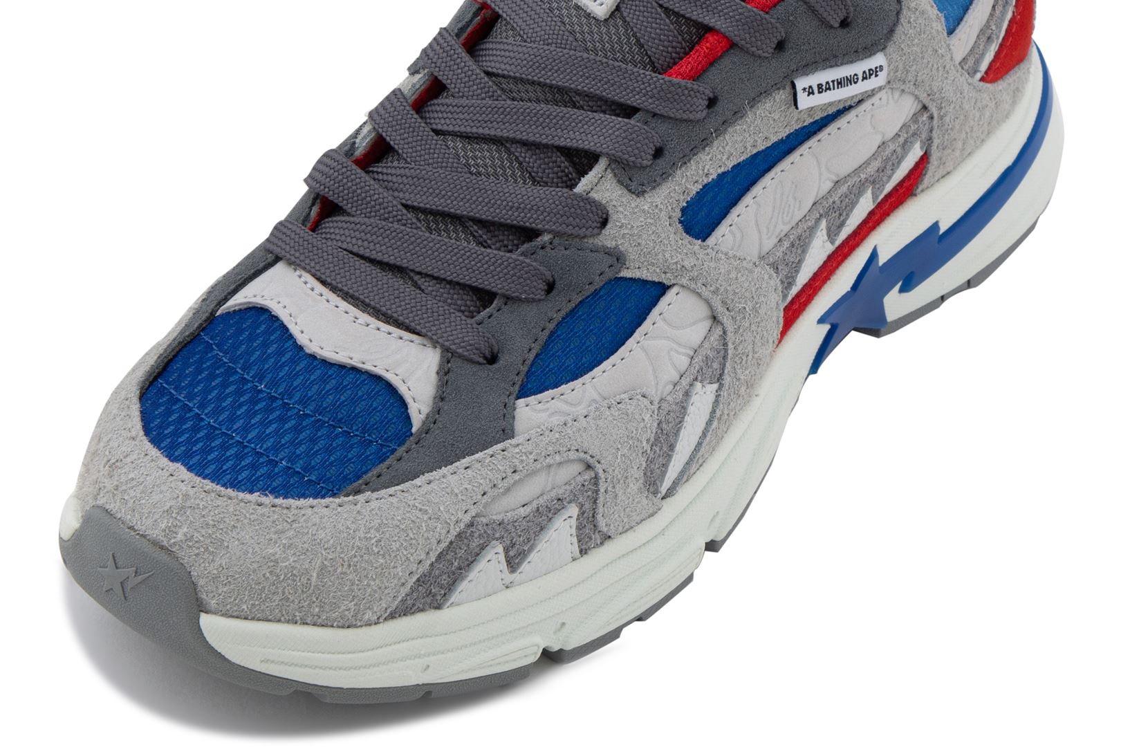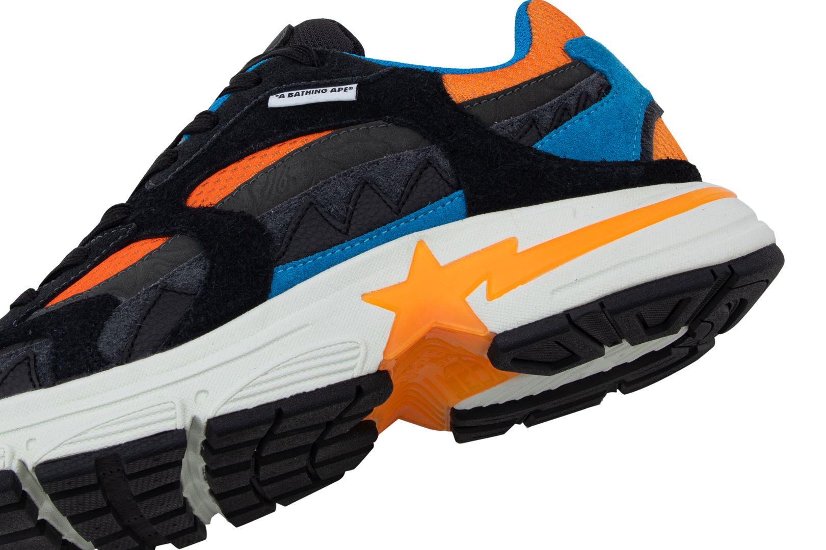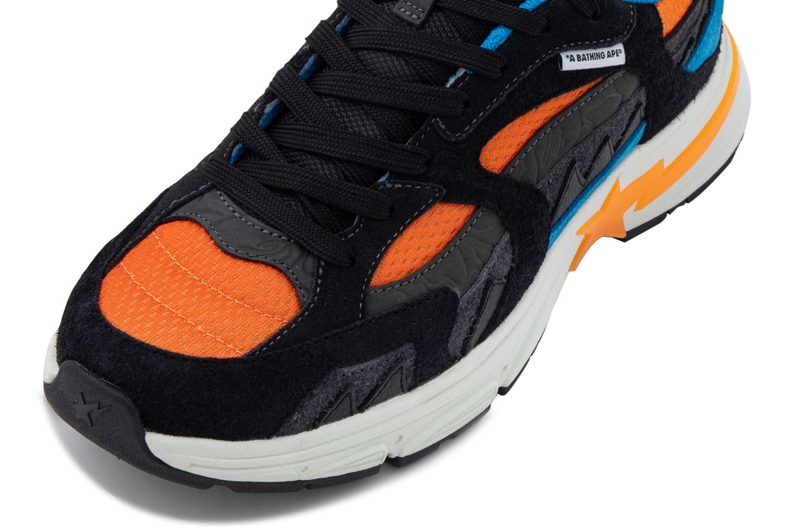 The new BAPE SHARK STA features a luxurious mix of suede and long-hair suede, delivering a tactile and refined feel that enhances the overall design. Each colorway draws inspiration from the natural beauty of summer, reflecting its warmth, vibrancy, and tranquility. The black and orange combination captures the fiery hues of a sunrise, while the grey and blue iteration embodies the cool serenity of the sky. The light grey and burgundy option exudes sophistication, reminiscent of tranquil summer evenings. A semi-transparent STA logo brings a subtle shine to the sneaker, while the debossed line camo details add depth and texture, seamlessly enhancing the gradient panels and completing its dynamic look.