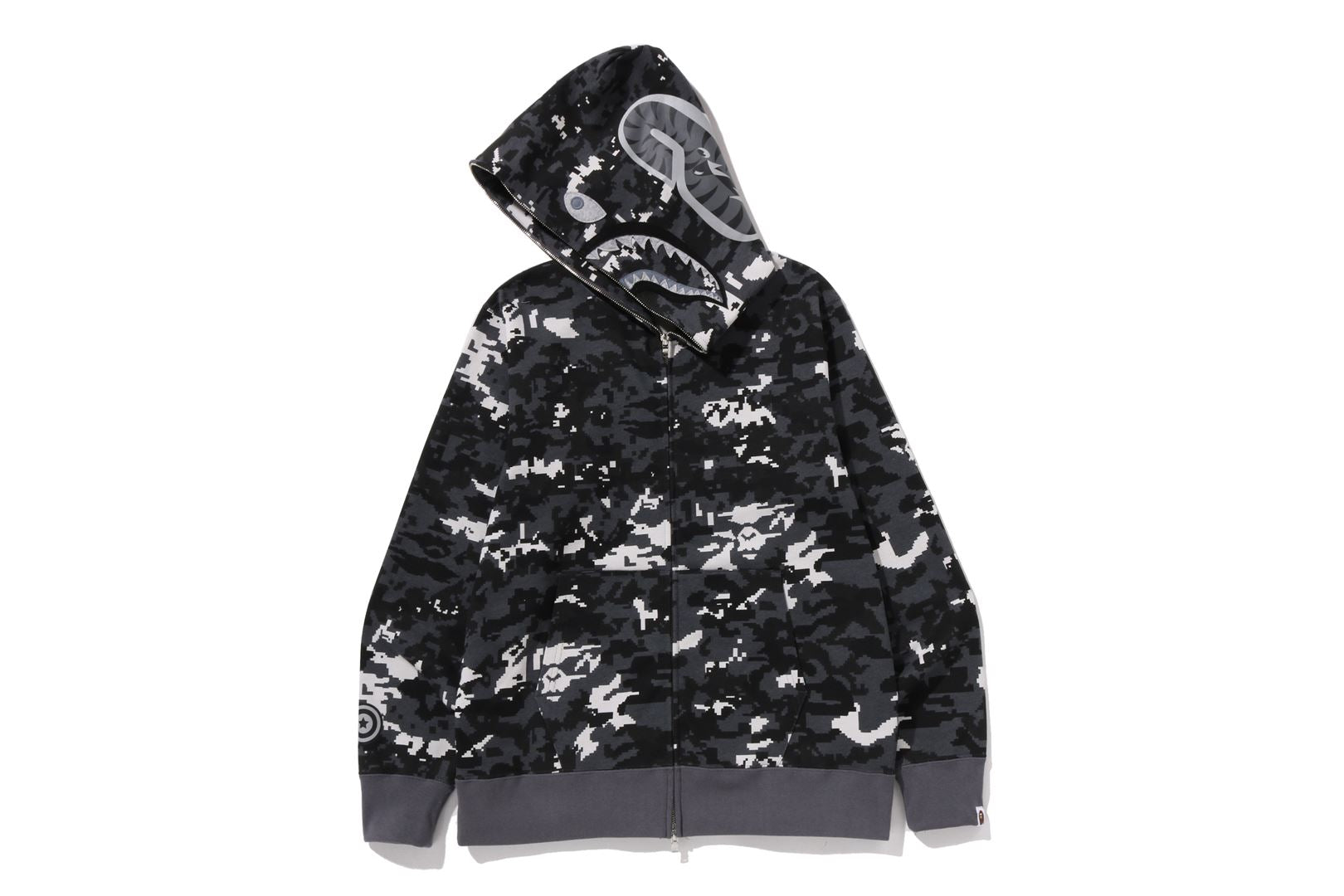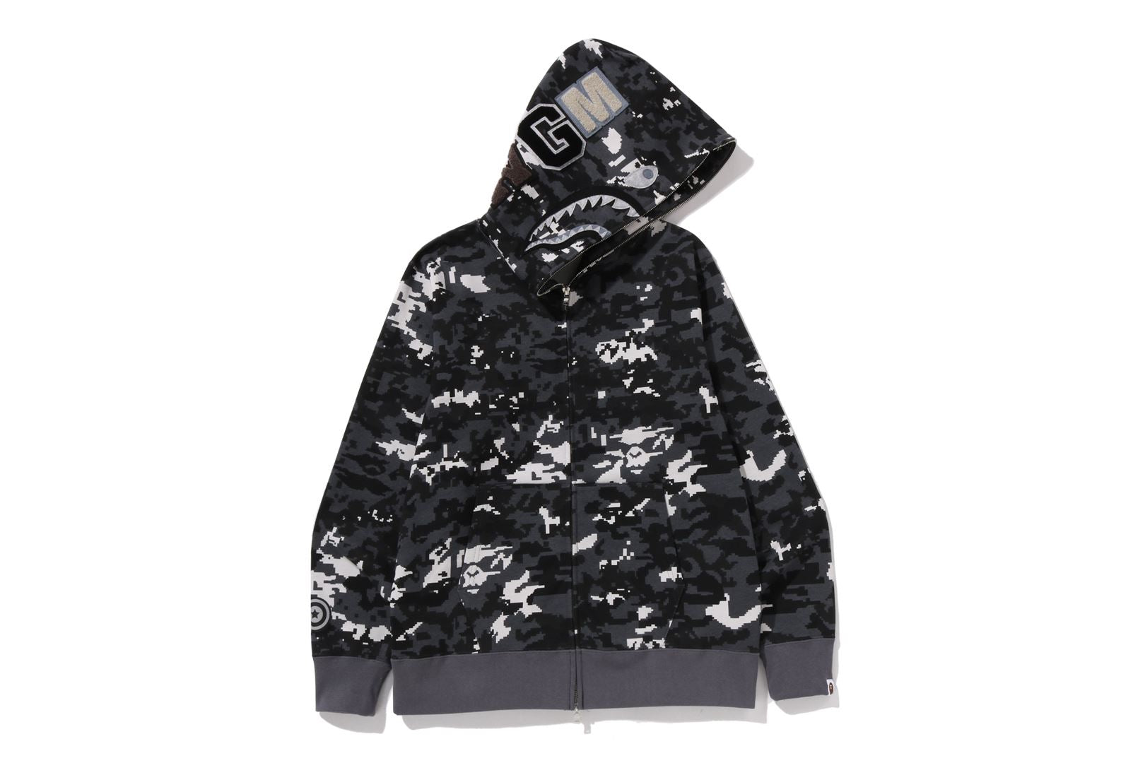 An iconic BAPE silhouette reworked in Multi Pixel Camo, inspired by retro gaming and digital culture. Featuring the signature Shark full-zip hood, this hoodie delivers bold visual impact while keeping a regular fit for everyday wear.