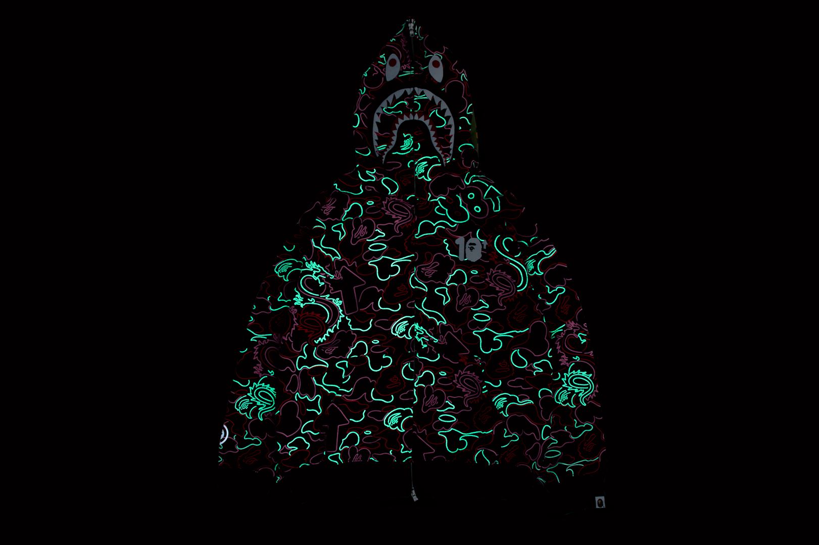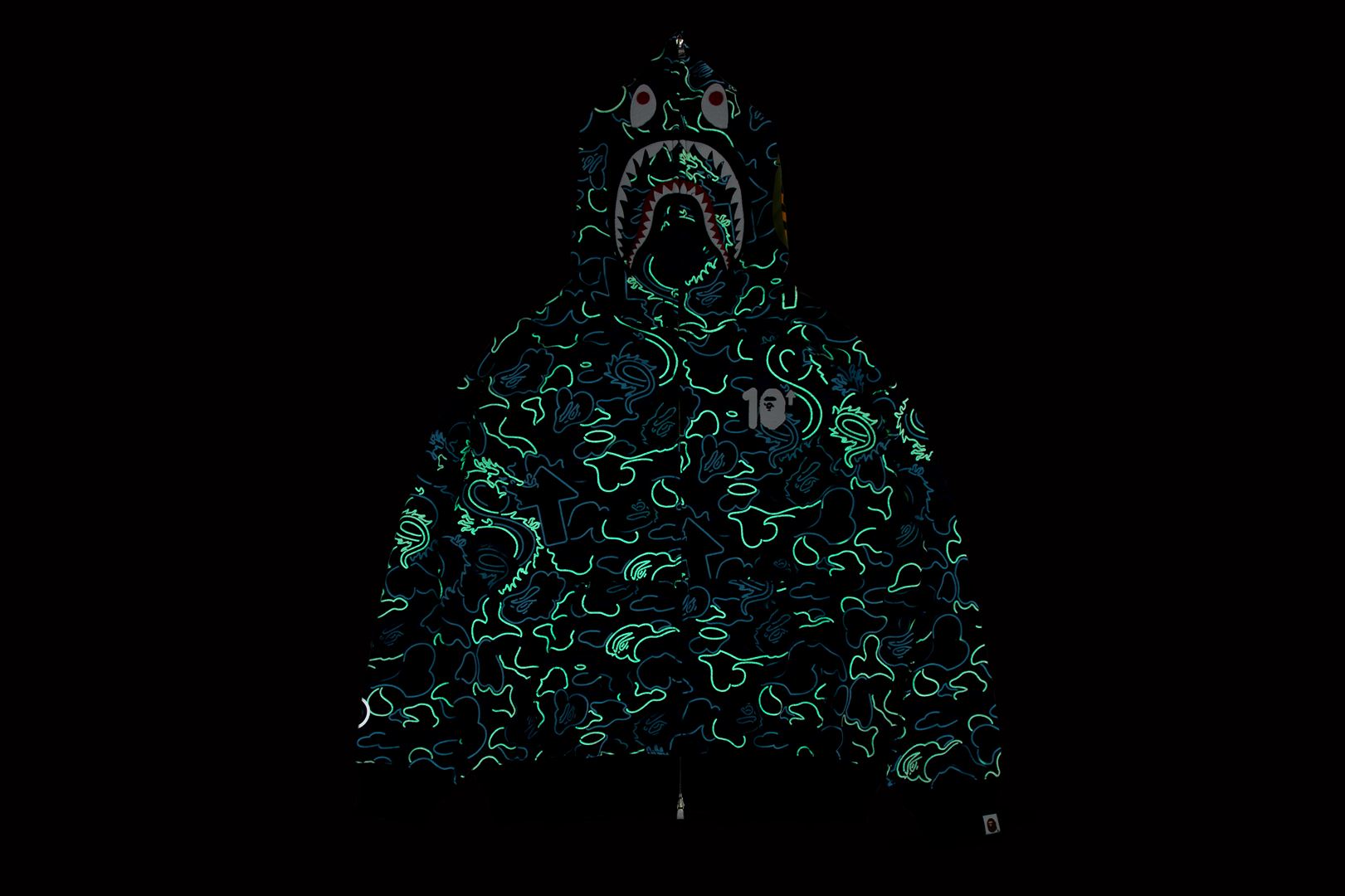 BAPE X 88RISING GLOW IN THE DARK CAMO SHARK FULL ZIP HOODIE