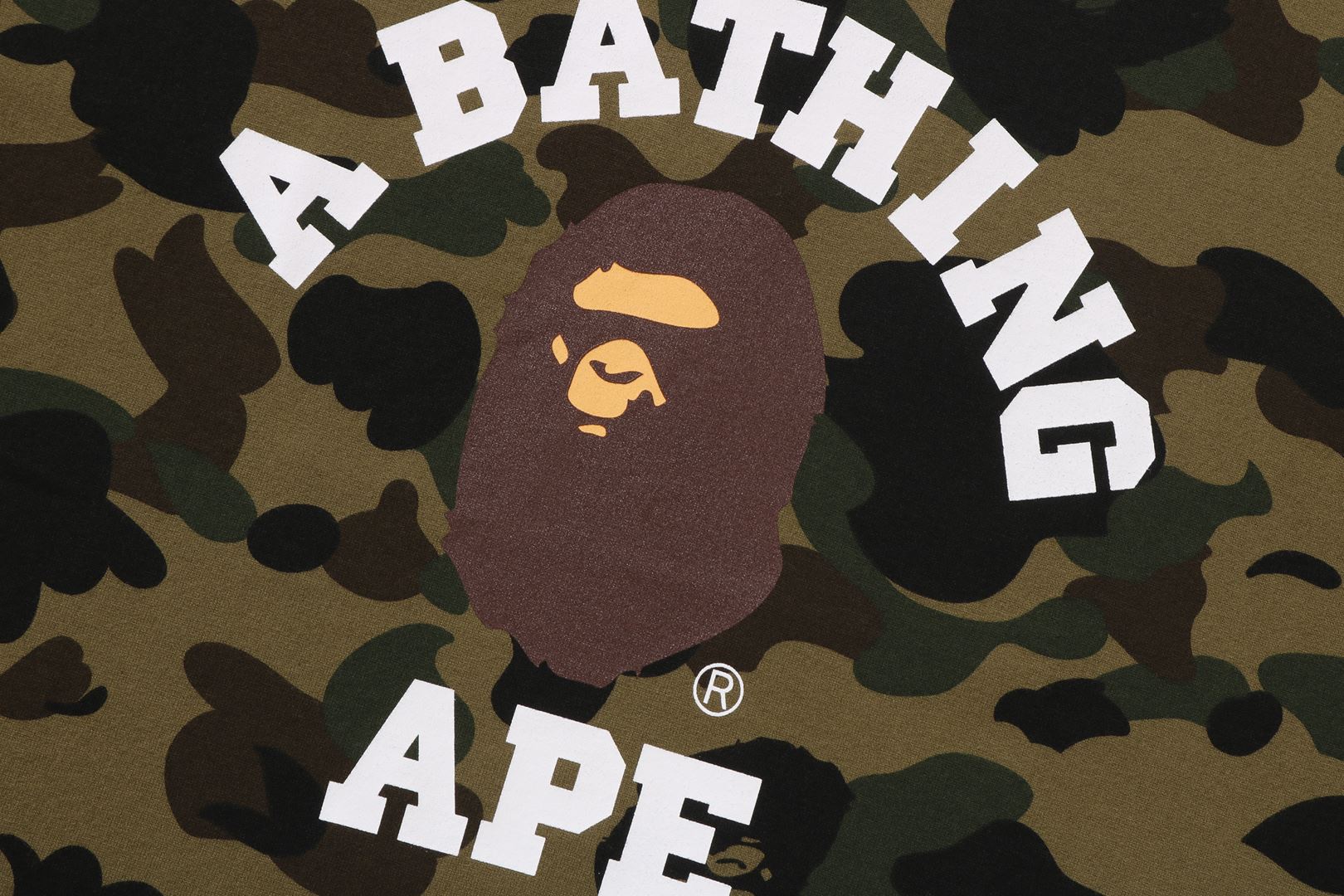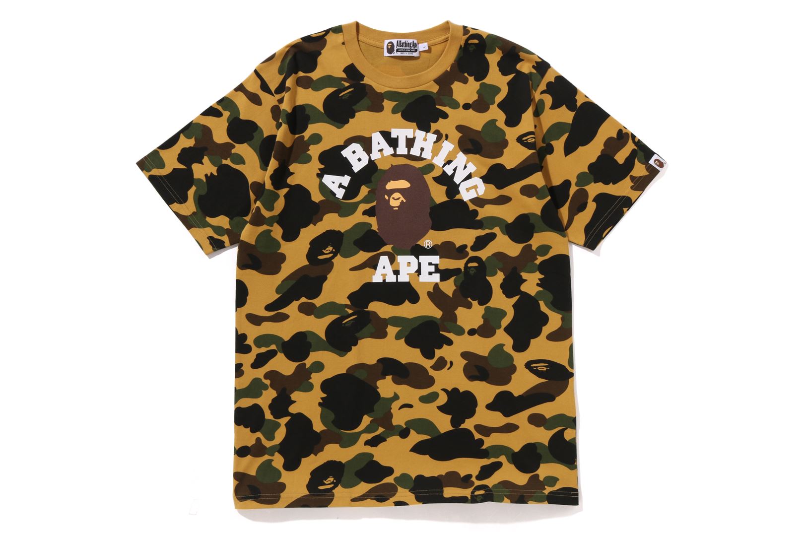 A BAPE staple. The 1ST Camo College Tee features the signature camo fill and classic Ape Head college motif.