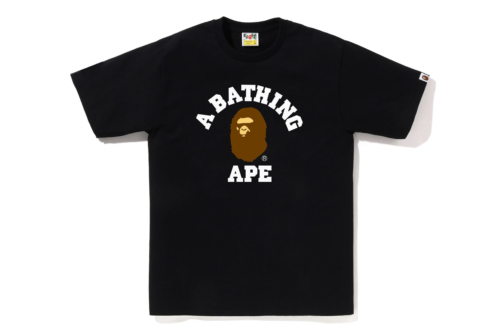 A classic piece from BAPE, this college tee is crafted from soft cotton to keep you comfortable throughout the day. It showcases the iconic APE HEAD and A Bathing Ape arch logo printed in rubber across the chest. Designed with a regular fit, it works perfectly for layering or wearing on its own. Available in various colors and sizes, you can find the perfect match to suit your style.