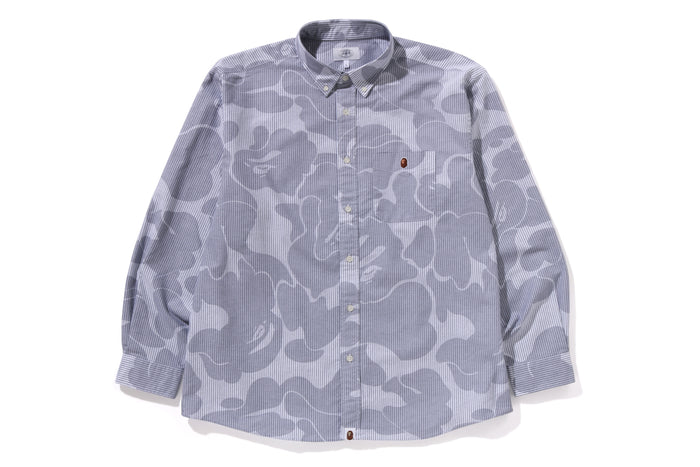 BAPE MENS COTTON STRIPED CAMO BUTTON UP SHIRT