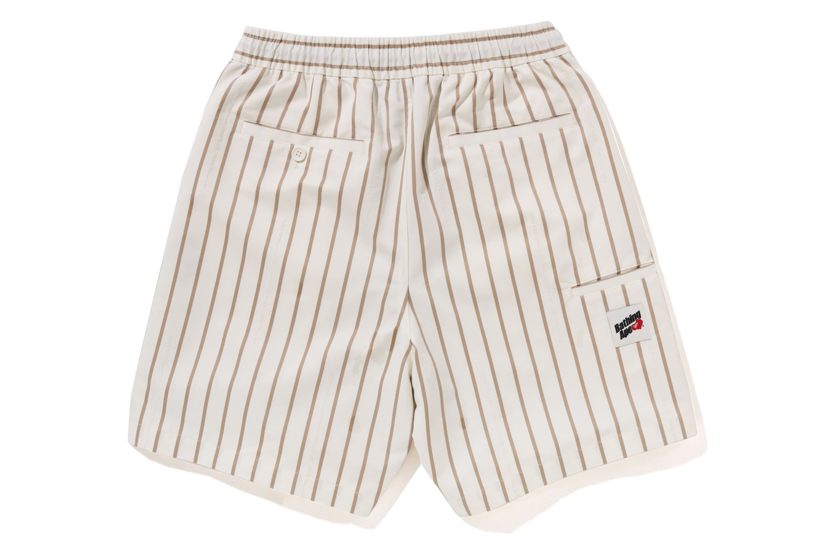 Introducing the BAPE STRIPE WORK SHORTS. These shorts are designed with a stylish and versatile striped pattern, perfect for any casual or work outfit. Made with high-quality materials, they offer both style and durability. Complete your wardrobe with these must-have shorts.