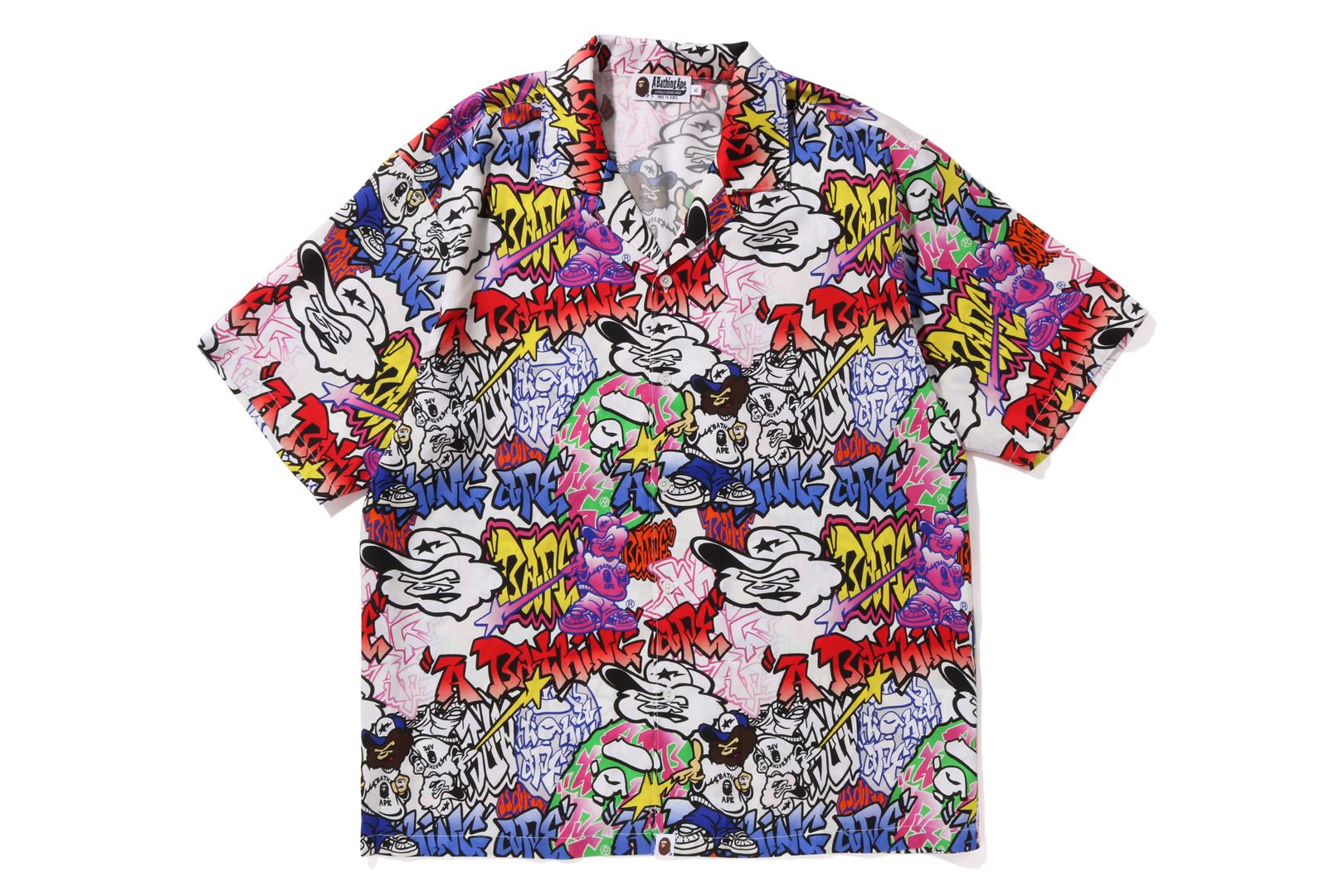 BAPE MENS GRAFFITI PATTERN HAWAIIAN SHIRT