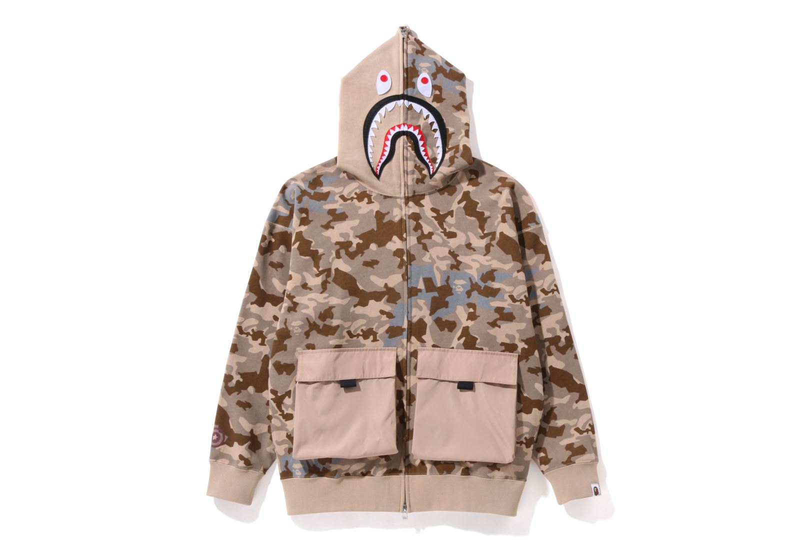 SAND CAMO BIG POCKET OVERSIZED SHARK FULL ZIP HOODIE