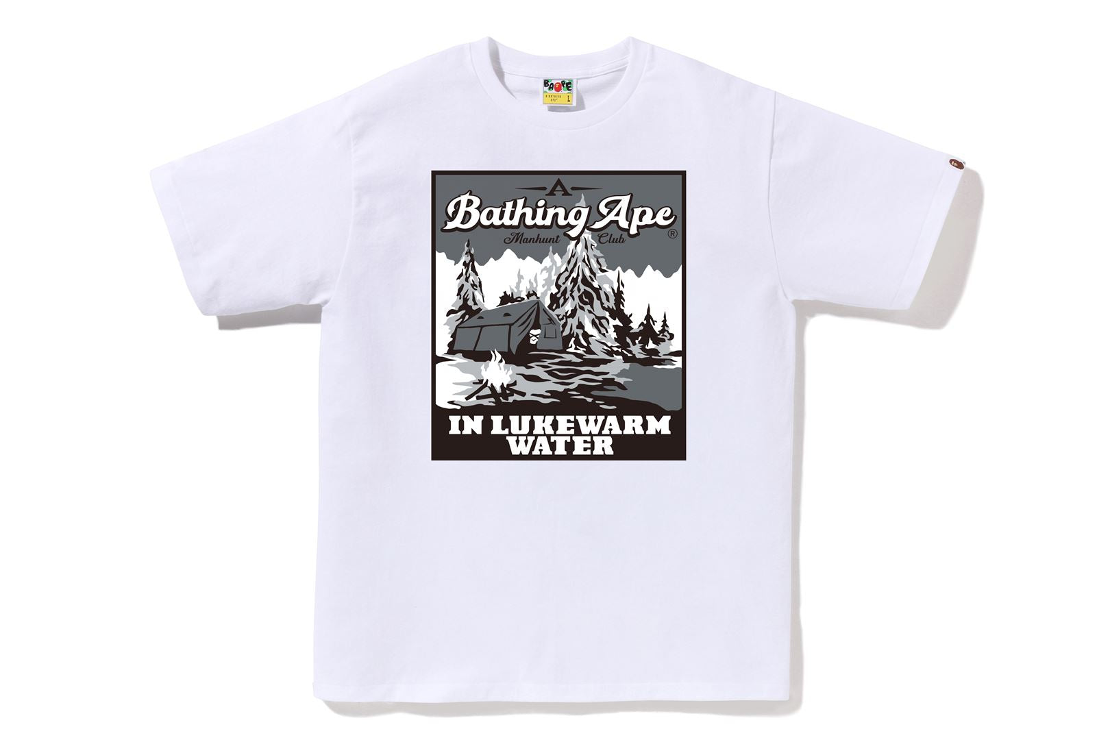 Channeling outdoor aesthetics, the BASE CAMP TEE features a camp-inspired graphic on the chest, blending rugged visuals with BAPE®'s streetwear edge. Crafted from 100% cotton for everyday comfort.