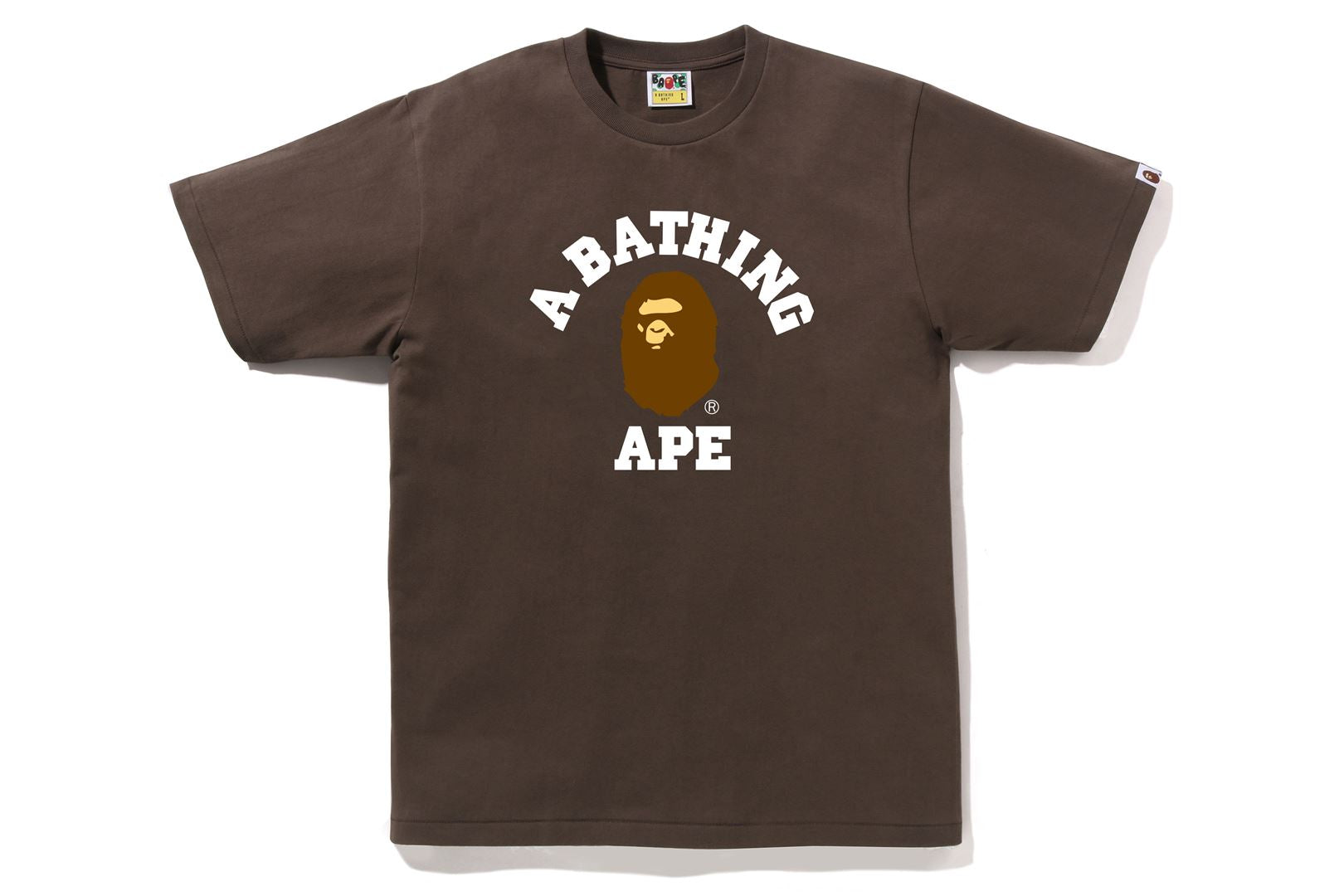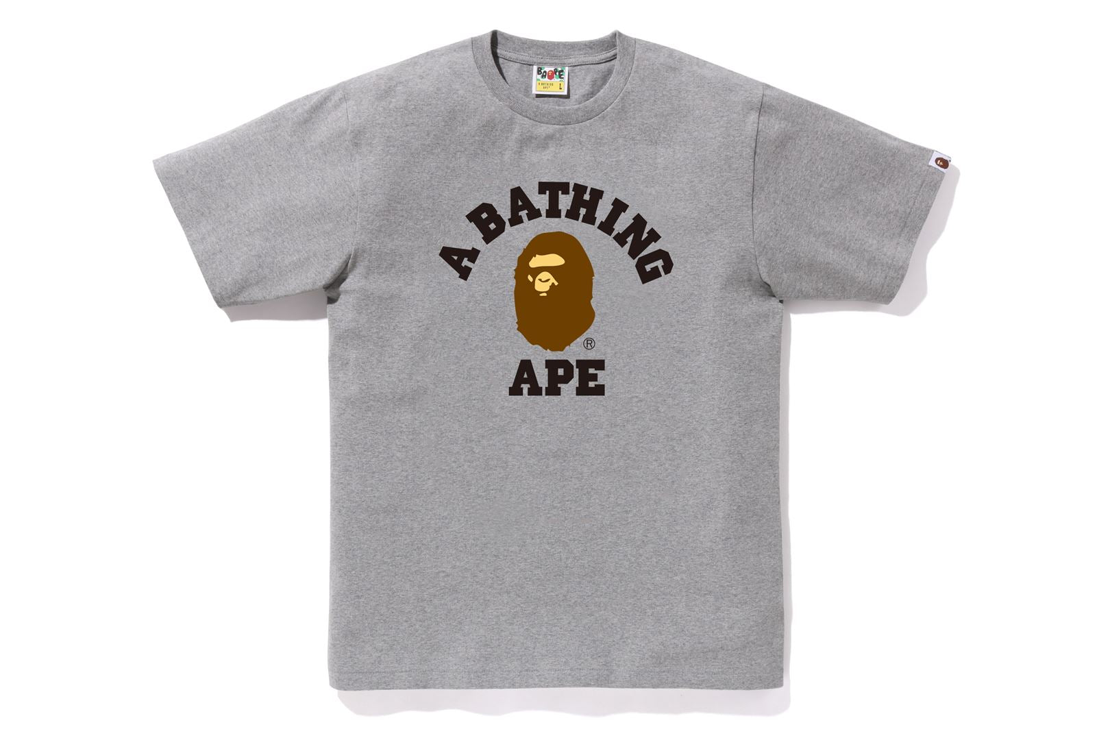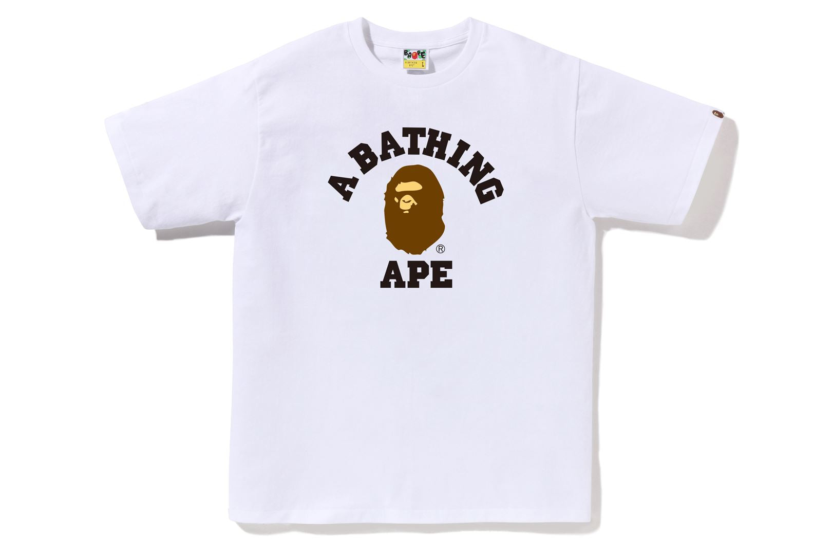 BAPE MENS COTTON APE HEAD PRINT COLLEGE T-SHIRT