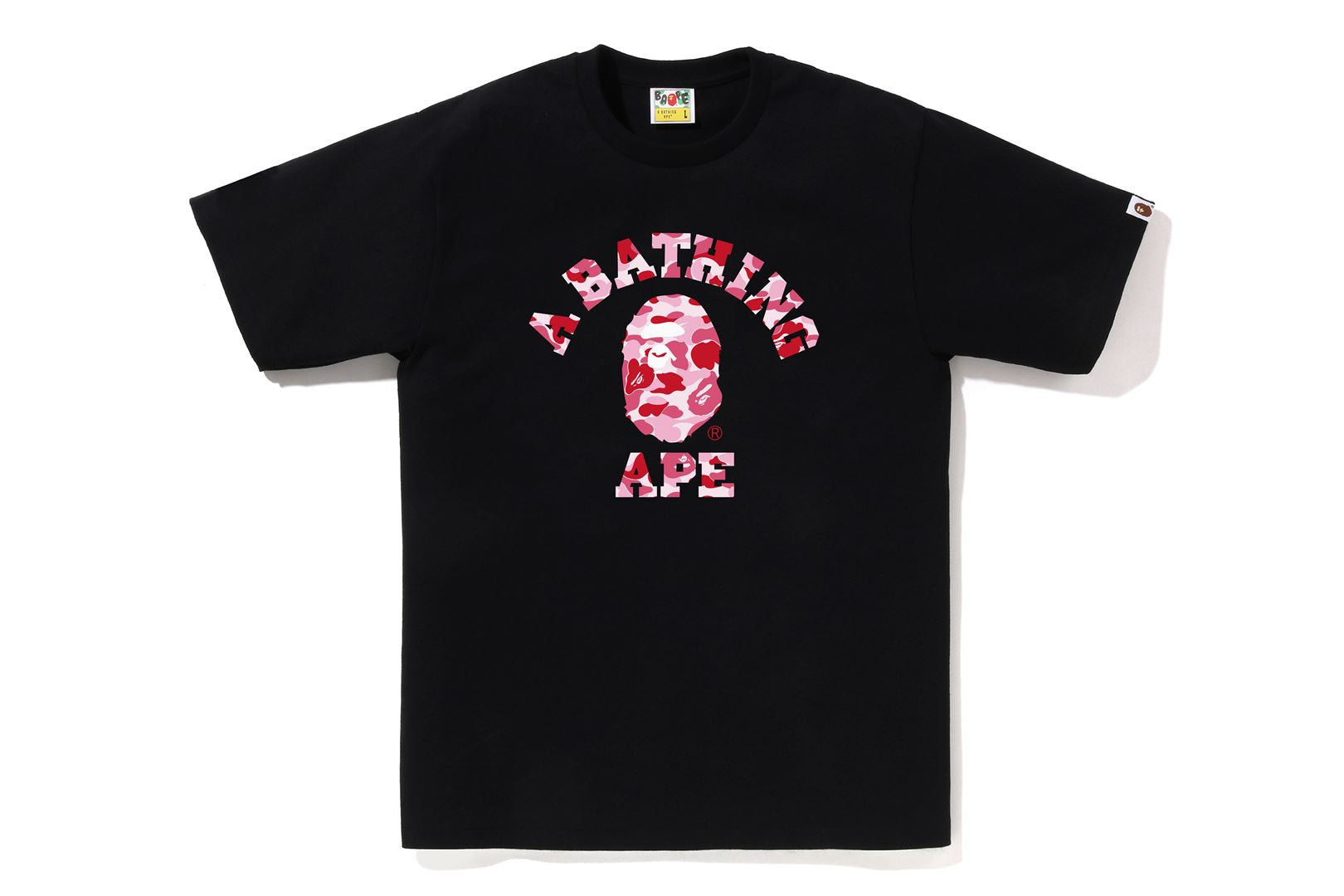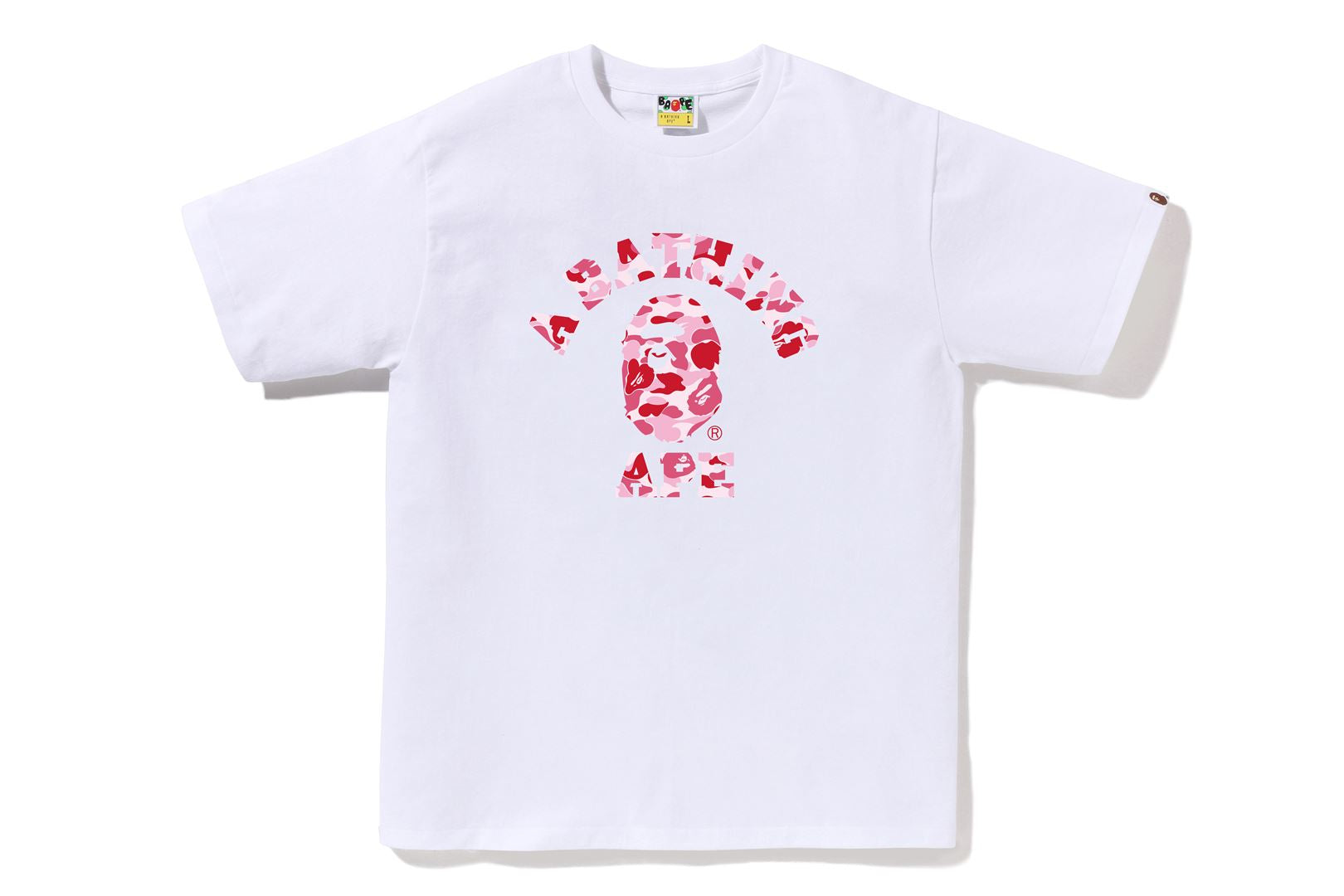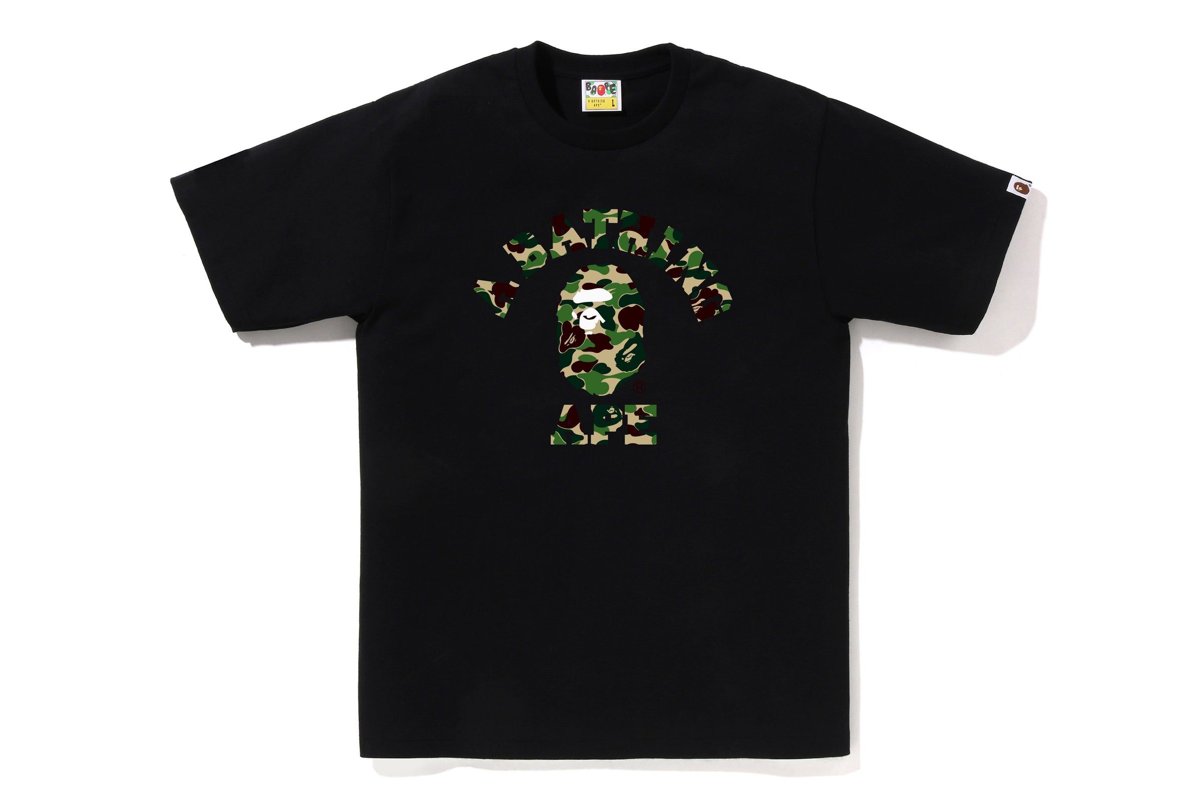 The BAPE MENS COTTON ABC CAMO COLLEGE T-SHIRT features a camo-filled Ape Head and text logo across the chest. Designed in a comfortable men’s fit, it combines signature streetwear elements with everyday wearability.