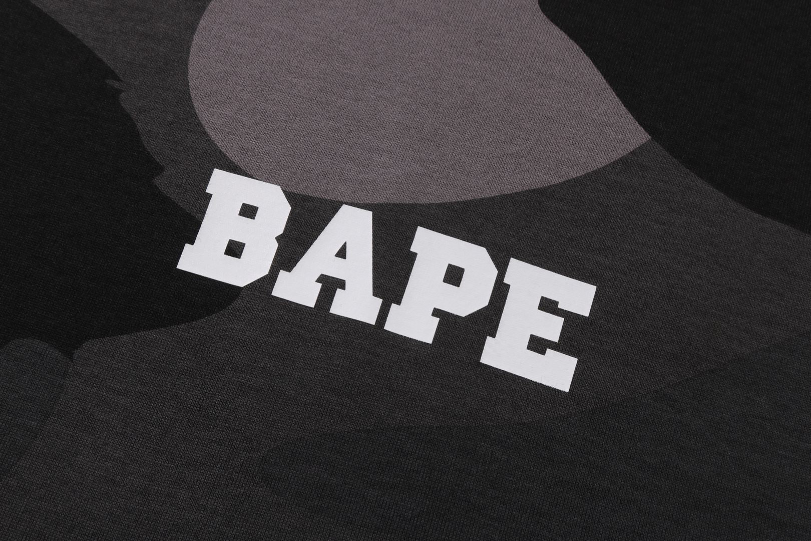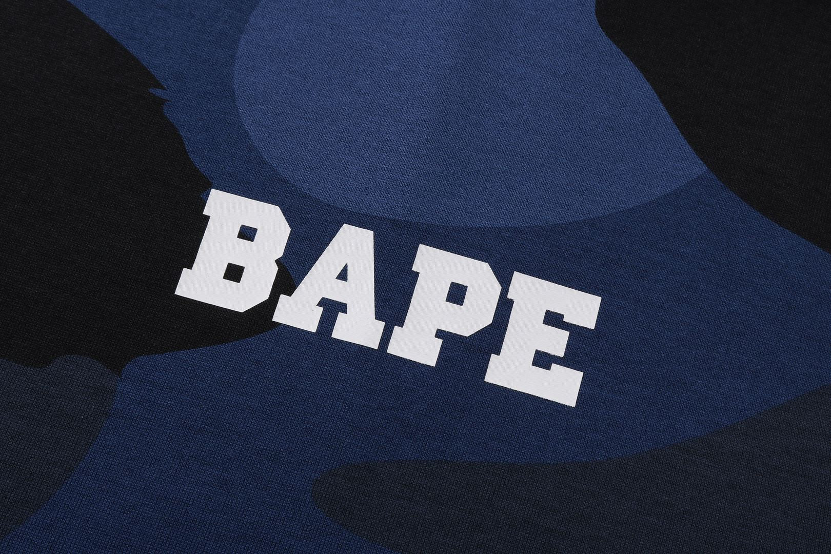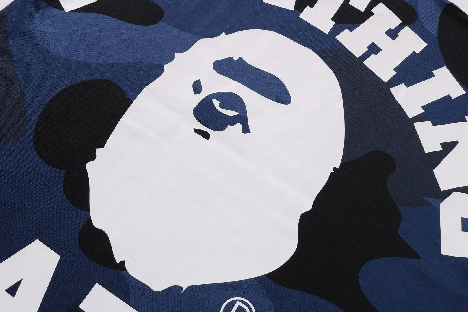 This comfy tee features a colorful camo pattern, soft cotton fabric, and relaxed fit for all-day ease. It shows BAPE on the front and COLLEGE on the back.