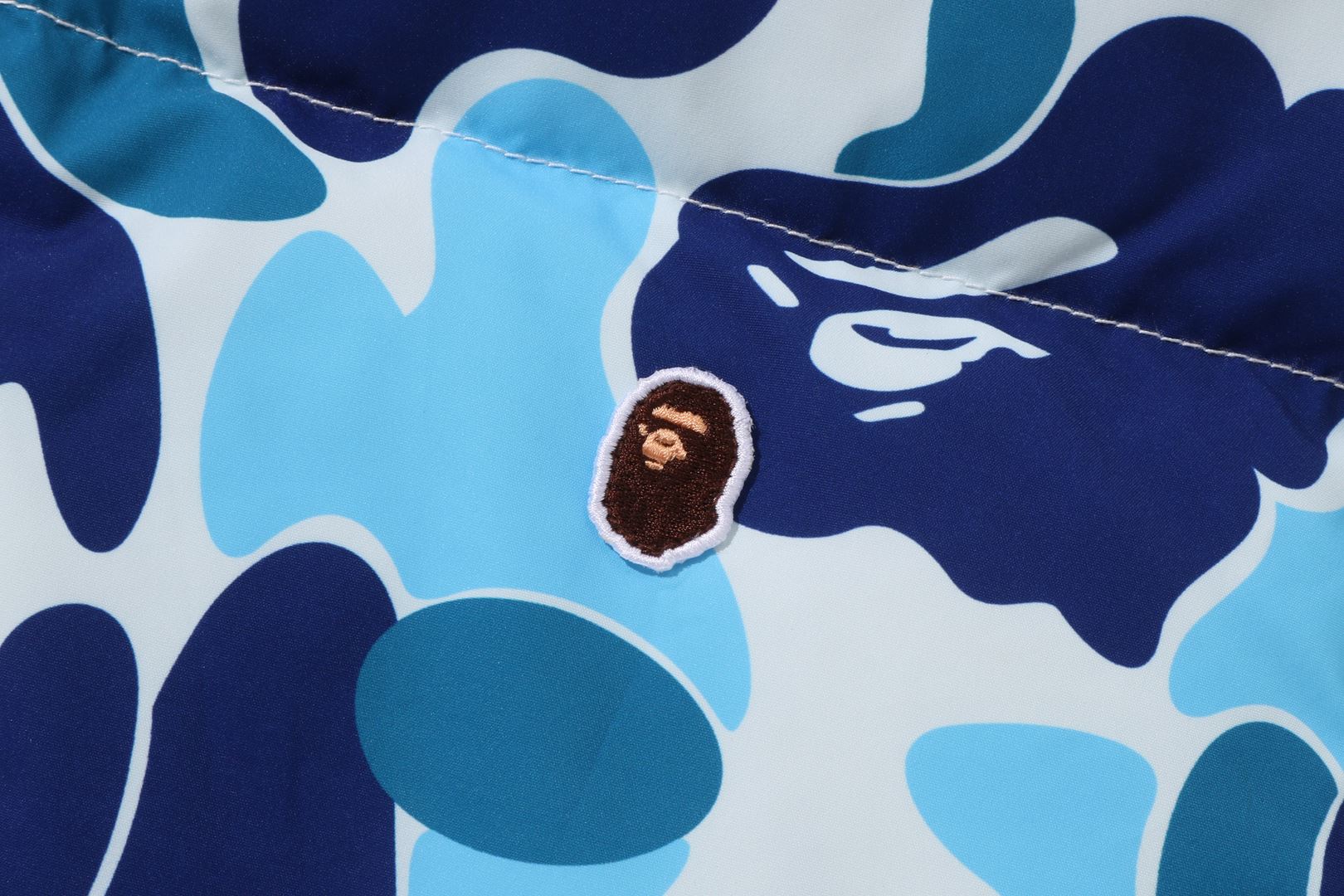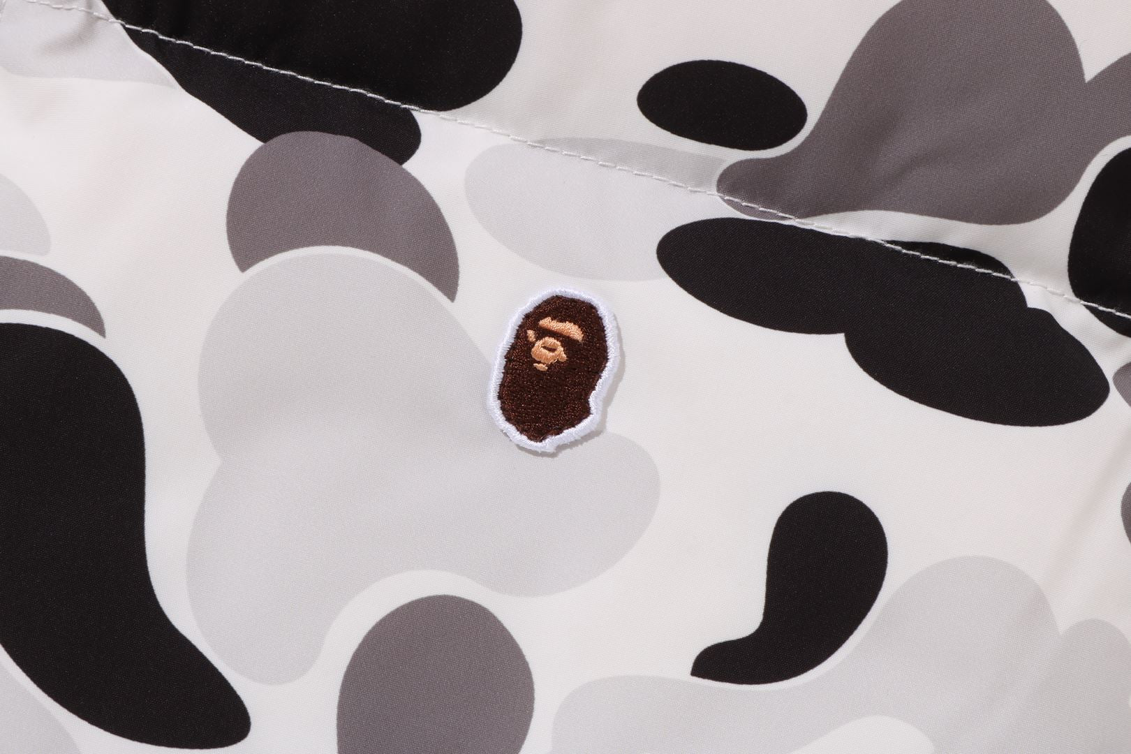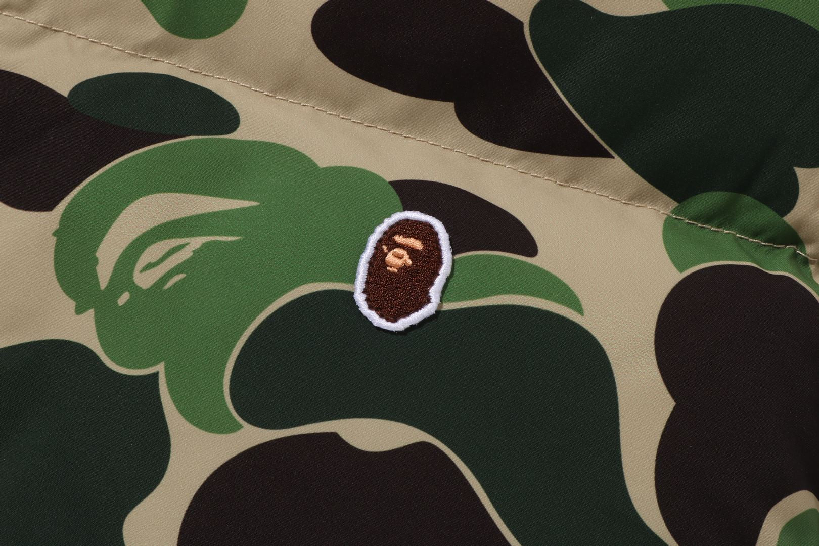 The popular ABC CAMO print adds a unique element to the jacket, while the reversible side sports the iconic ONE POINT APE head design for a more laid-back style.