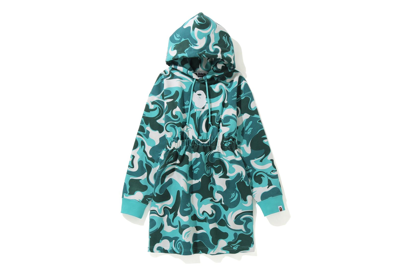MARBLE CAMO SHIRRED WAIST PULLOVER HOODIE ONEPIECE
