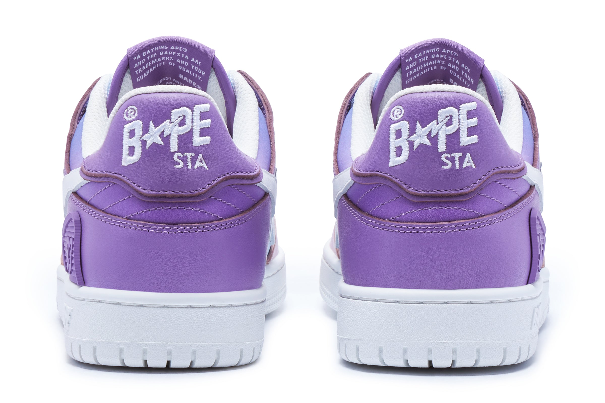 The premium calf leather upper showcases a stunning color shift from green to blue and purple to pink. Notice the intricate details BAPE STA is known for, including the luxurious leather texture and vibrant eyelets. These shoes aren’t just made for skating—they’re designed to boldly elevate your style with a striking splash of color.