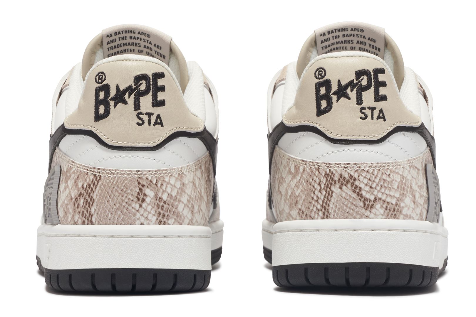 The bold BAPE SK8 STA stands out with its striking snakeskin pattern. Crafted from premium leather in a sleek monotone hue, it’s accented by suede overlays that bring dynamic contrast and texture. This design fuses a timeless silhouette with an edgy, contemporary twist.