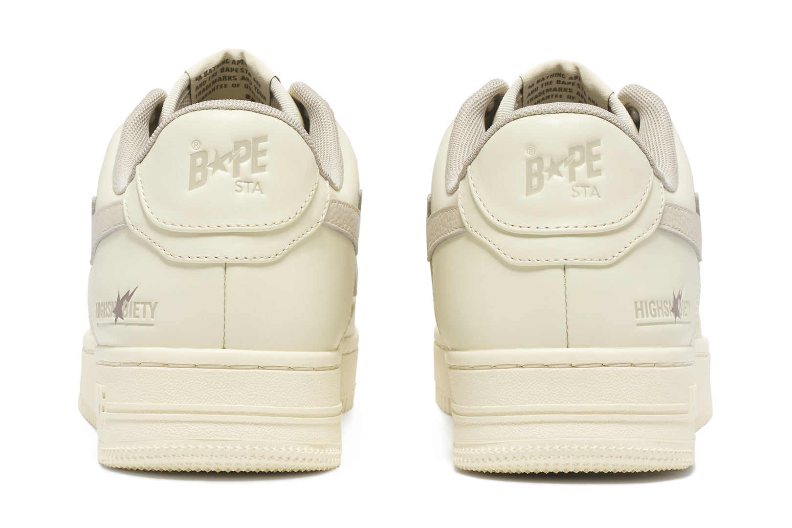 This exclusive sneaker is a fusion of BAPE®'s iconic design elements and Highsnobiety 's contemporary vision. The BAPE STA⢠features a unique mixture of beige and ivory colors, with the shoe crafted from premium calf leather and the star made from luxurious caviar leather.