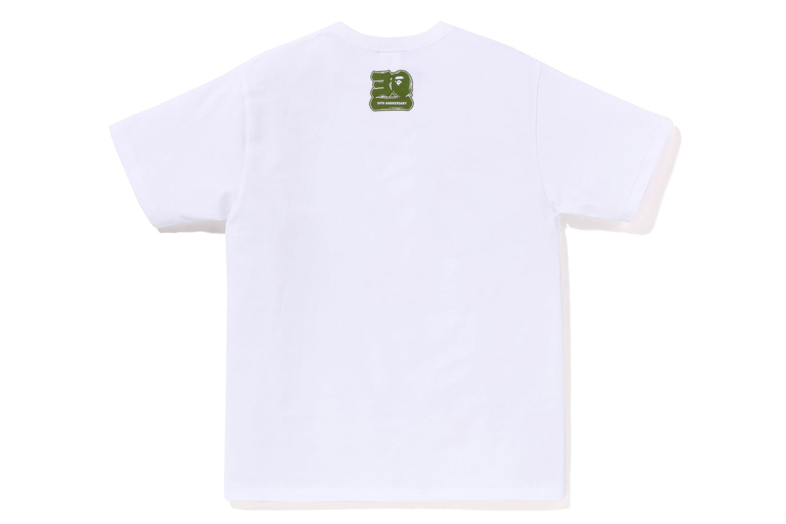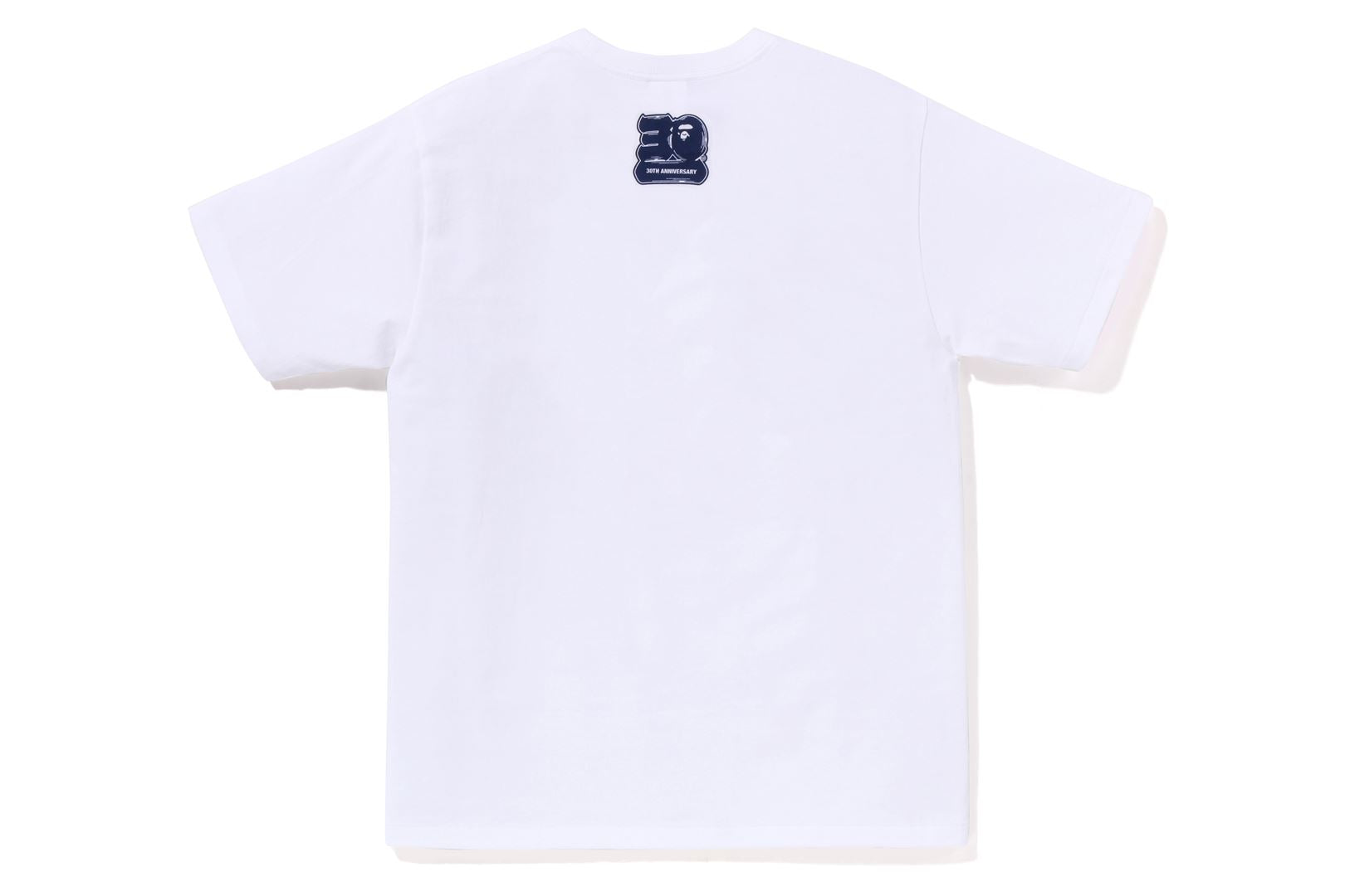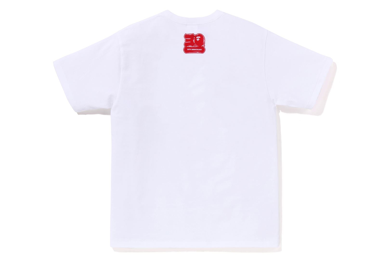 This short-sleeved T-shirt is made from high-quality USA cotton and features a LINE CAMO APE HEAD print with 30th anniversary logos on the front and back. It has a regular fit, a pin label on the left sleeve, comes in three colors and six sizes, and is packaged in a special 30th anniversary box.
