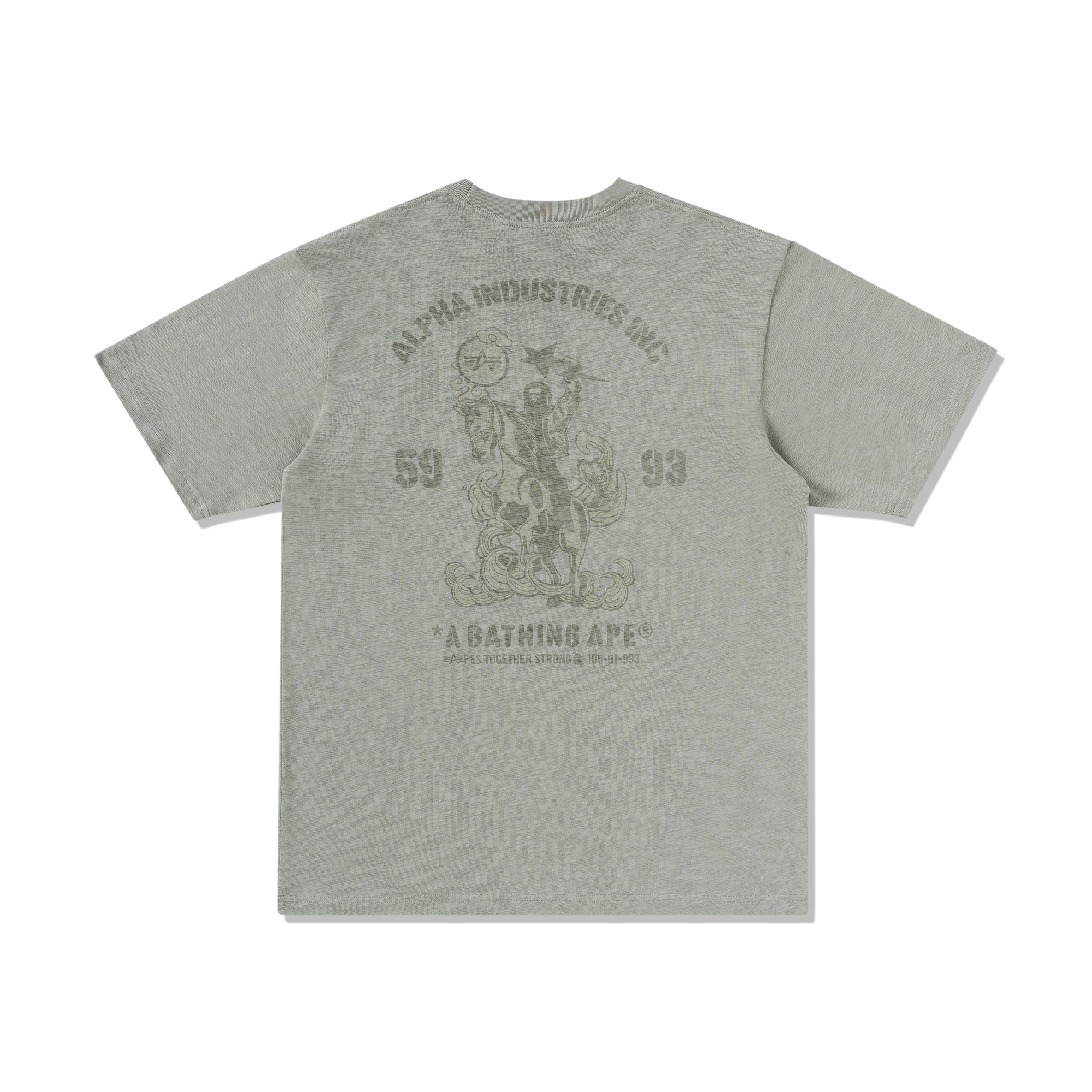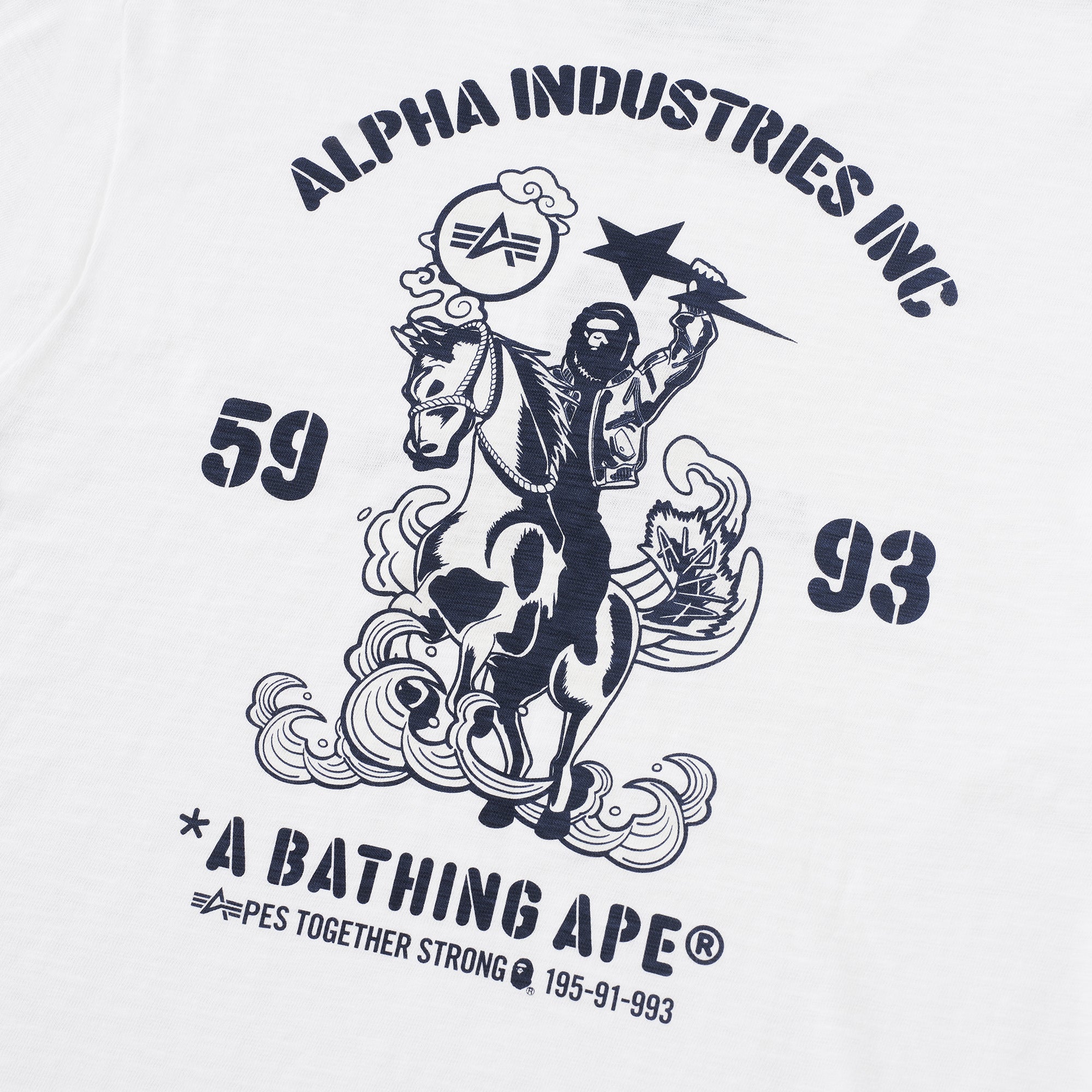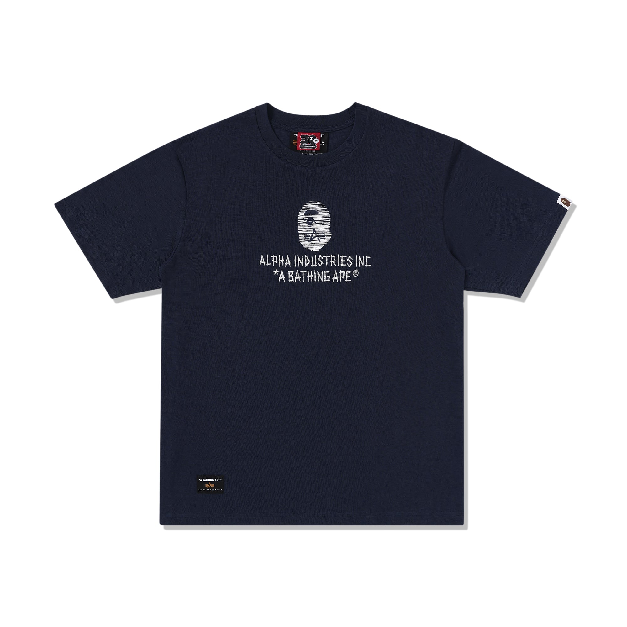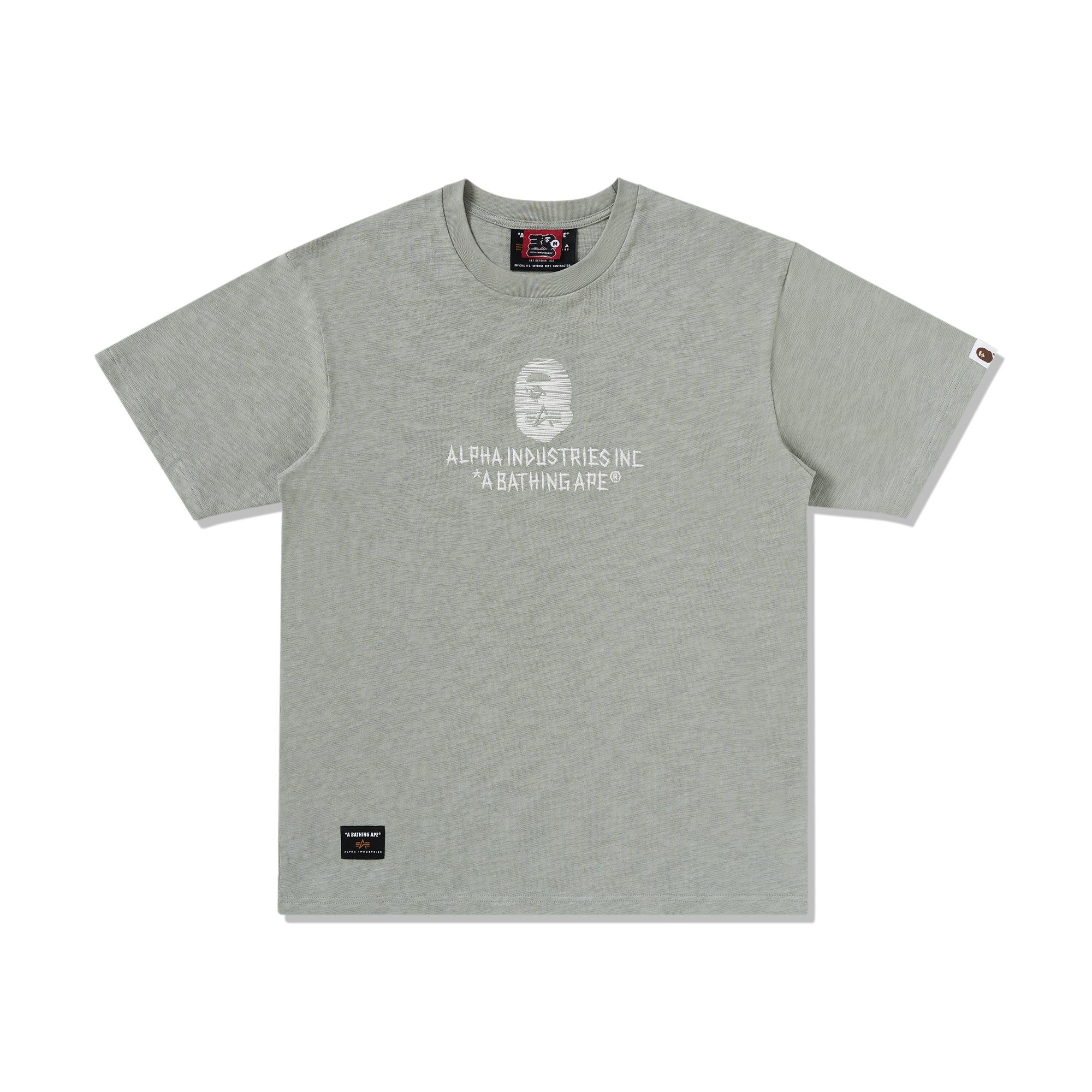 BAPE MENS CREAM & BLACK COTTON APE HEAD PRINT X ALPHA INDUSTRIES T-SHIRT