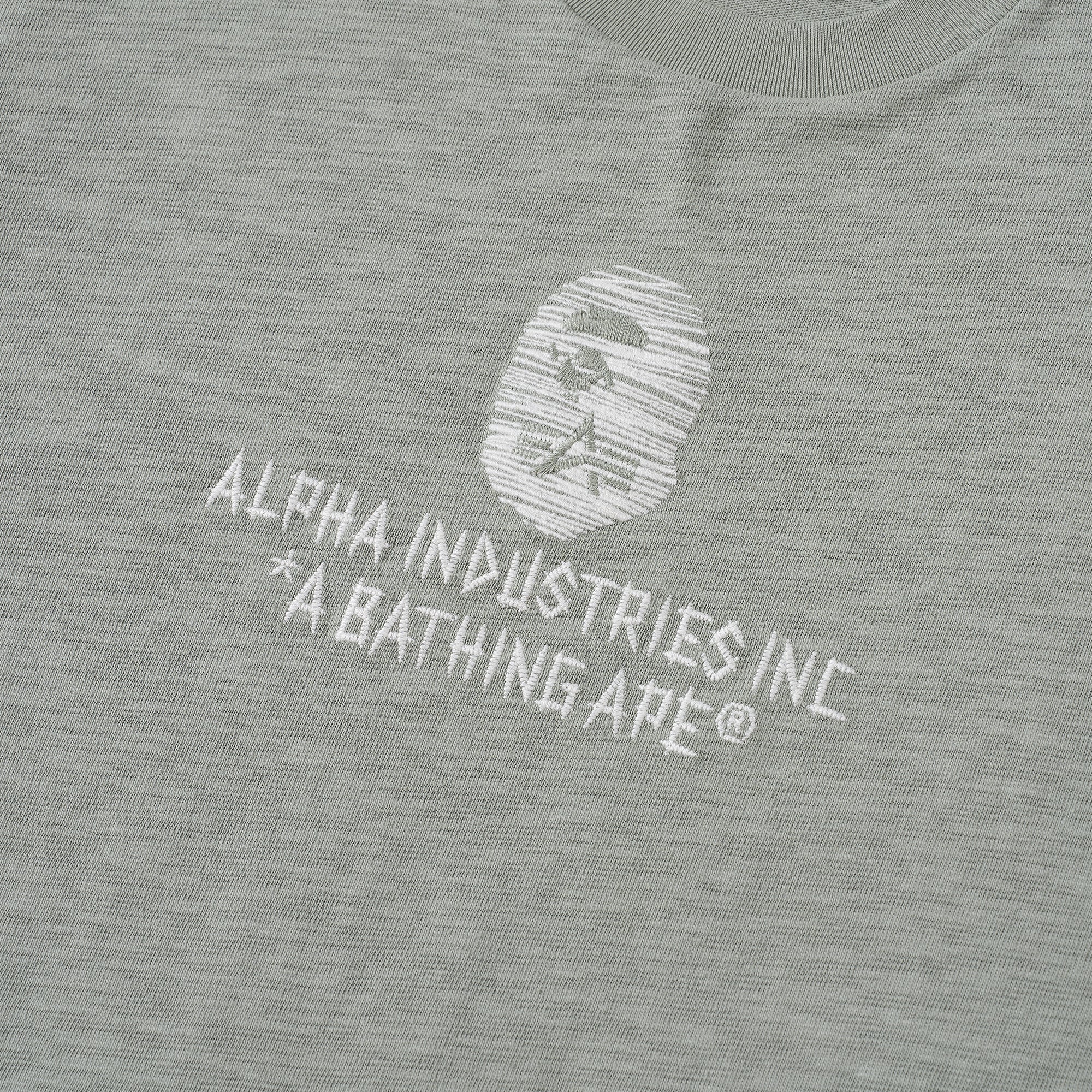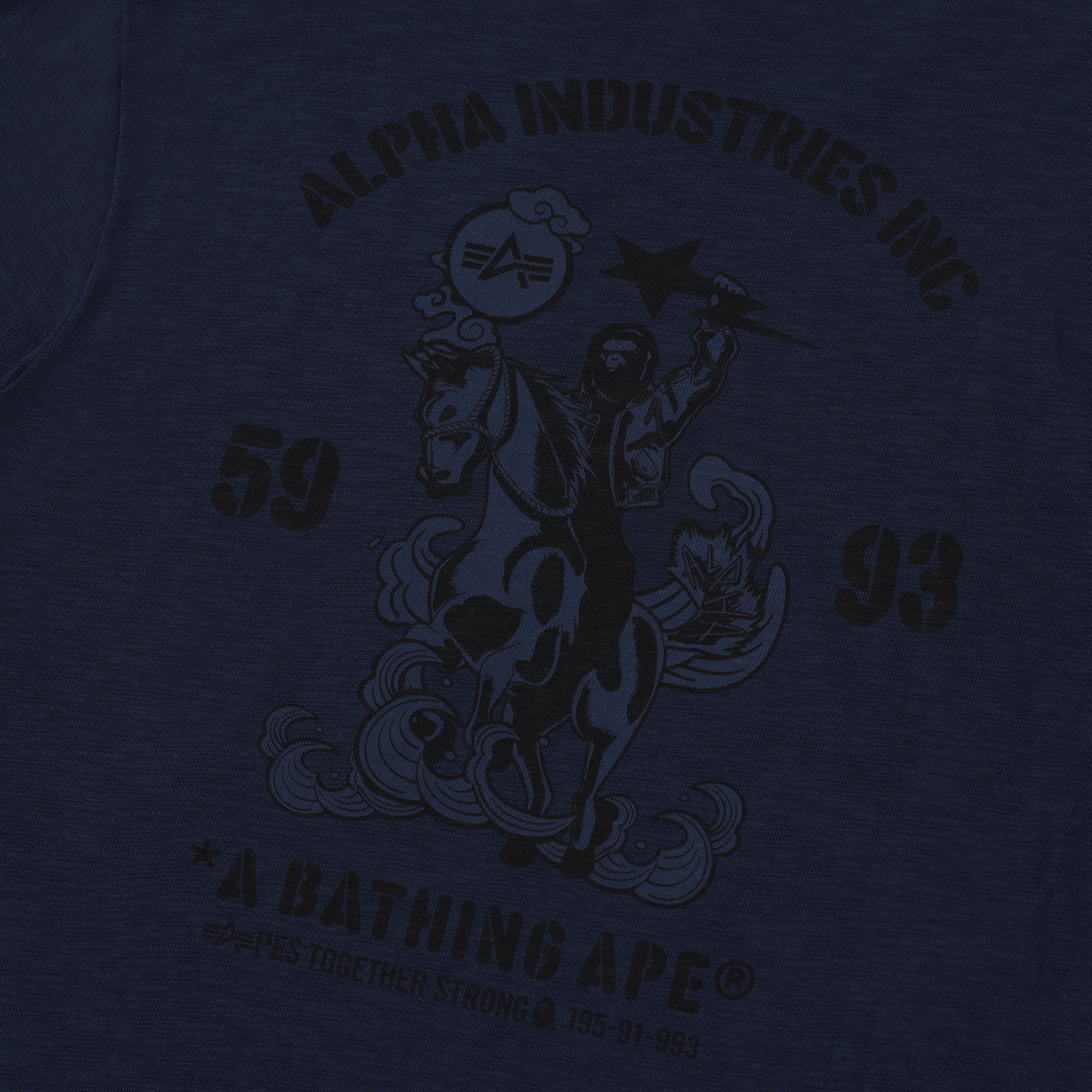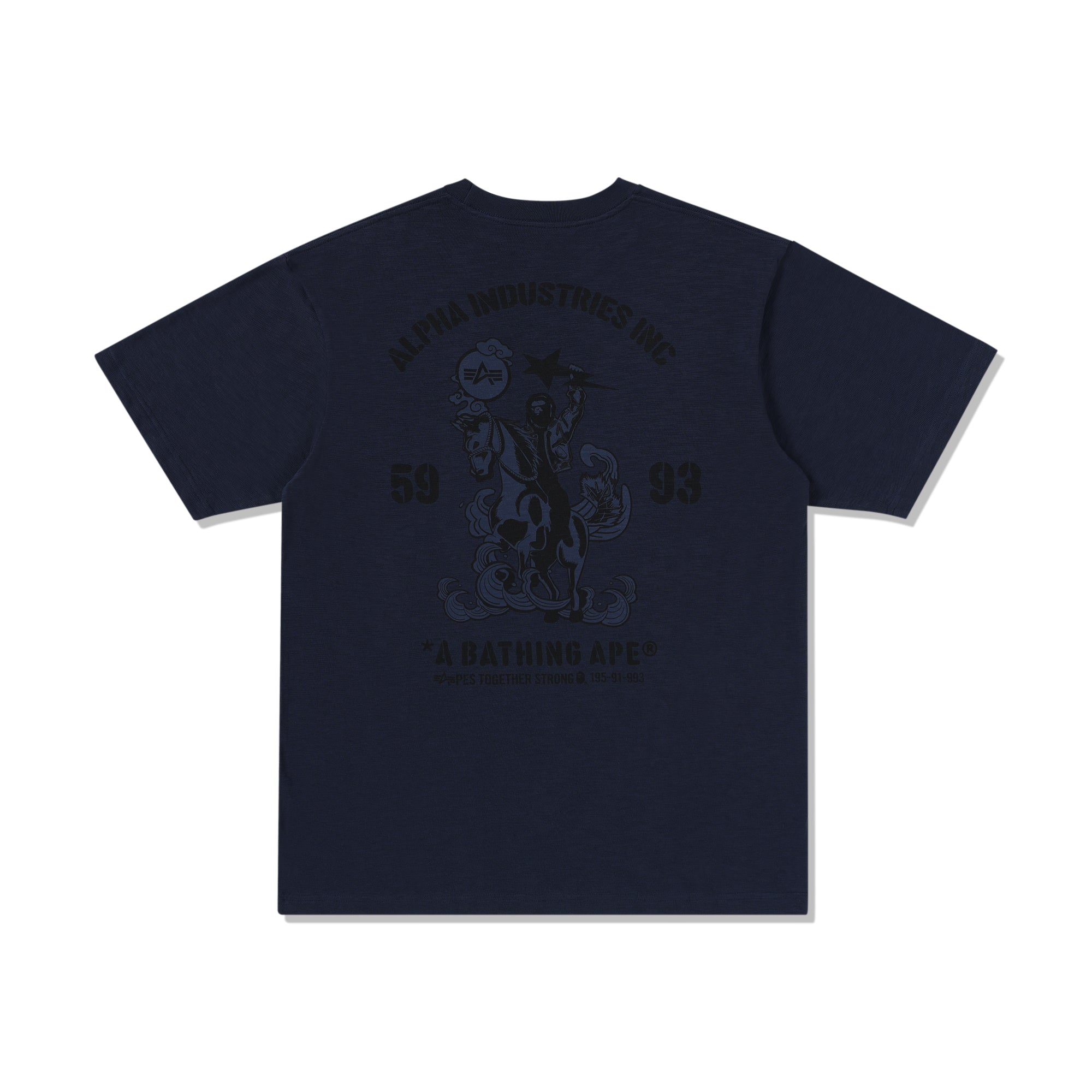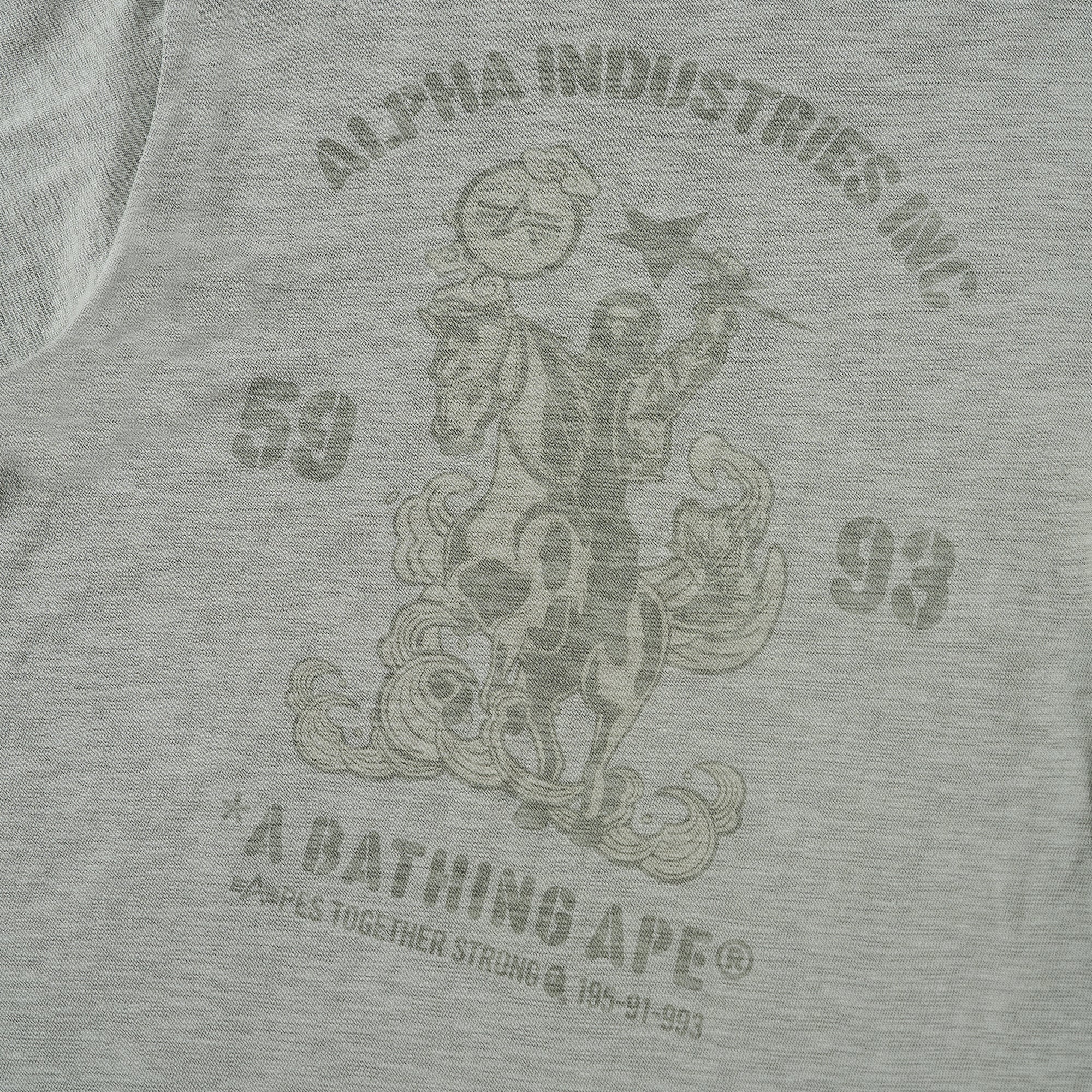 BAPE MENS CREAM & BLACK COTTON APE HEAD PRINT X ALPHA INDUSTRIES T-SHIRT